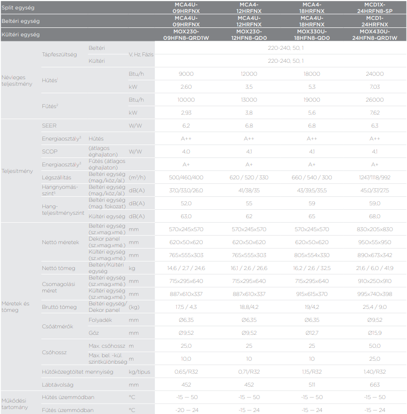 A Midea MCA4-18HRFNX-SP Kazettás split (R32, 5,3 kW, breezeless funkciós) fontos tulajdonságai: