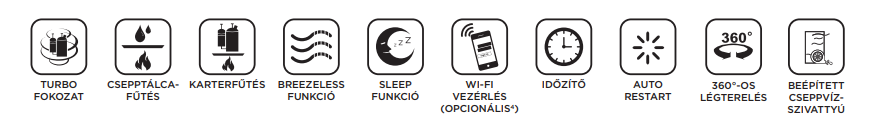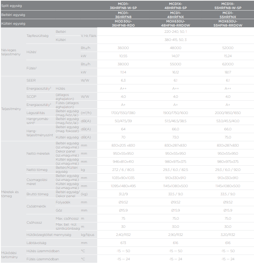 A Midea MCD1X-48HRFN8-SP kazettás split (R32, 14,1 kW) breezeless funkciós fontos tulajdonságai: